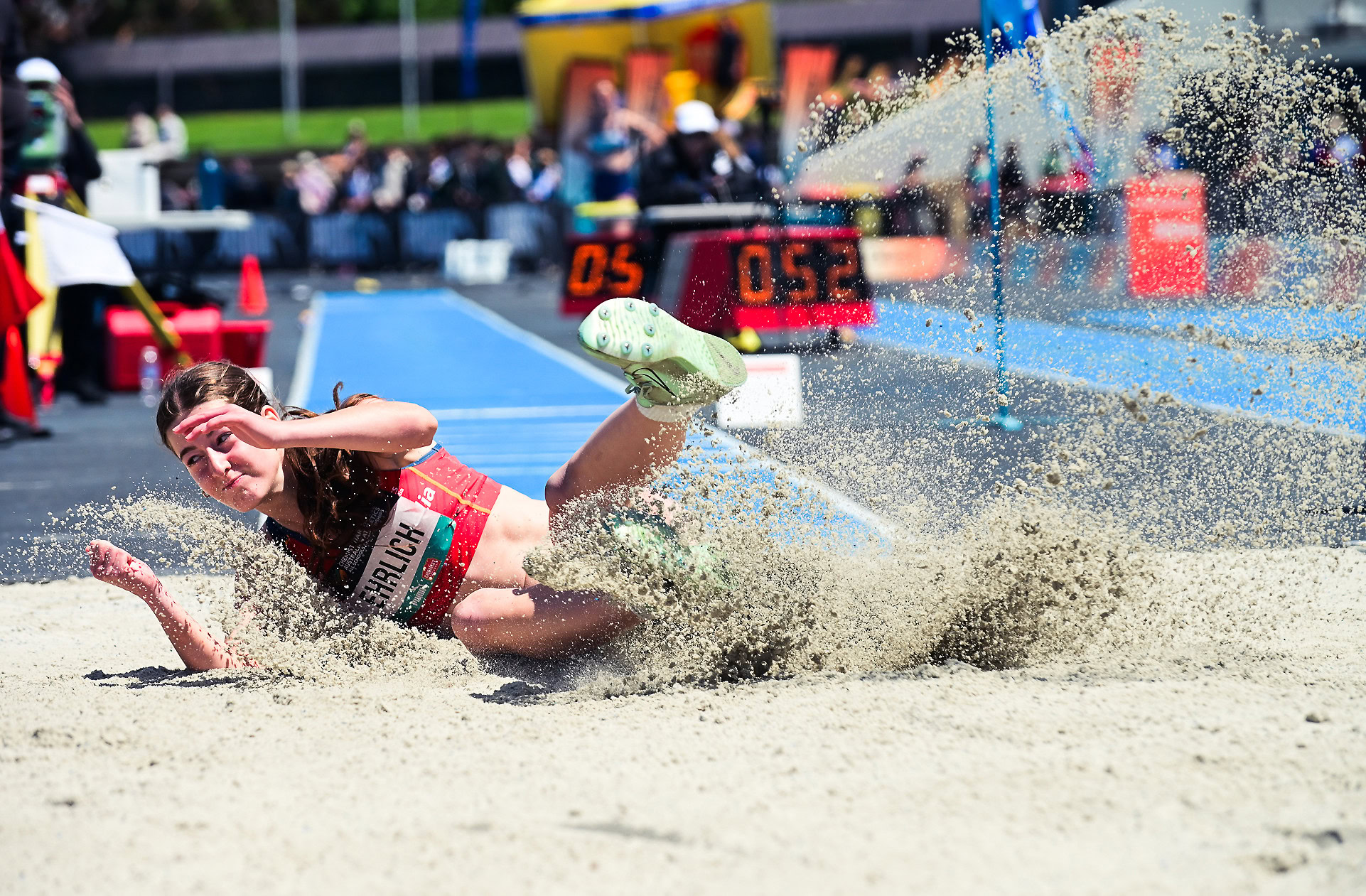 Sienna won the U15 100m/Long Jump double in 12.16s/5.63m, had a pair of silvers in the 200m/4x100m with 24.46s/48.09s and was fifth in the shot put in 11.41m.