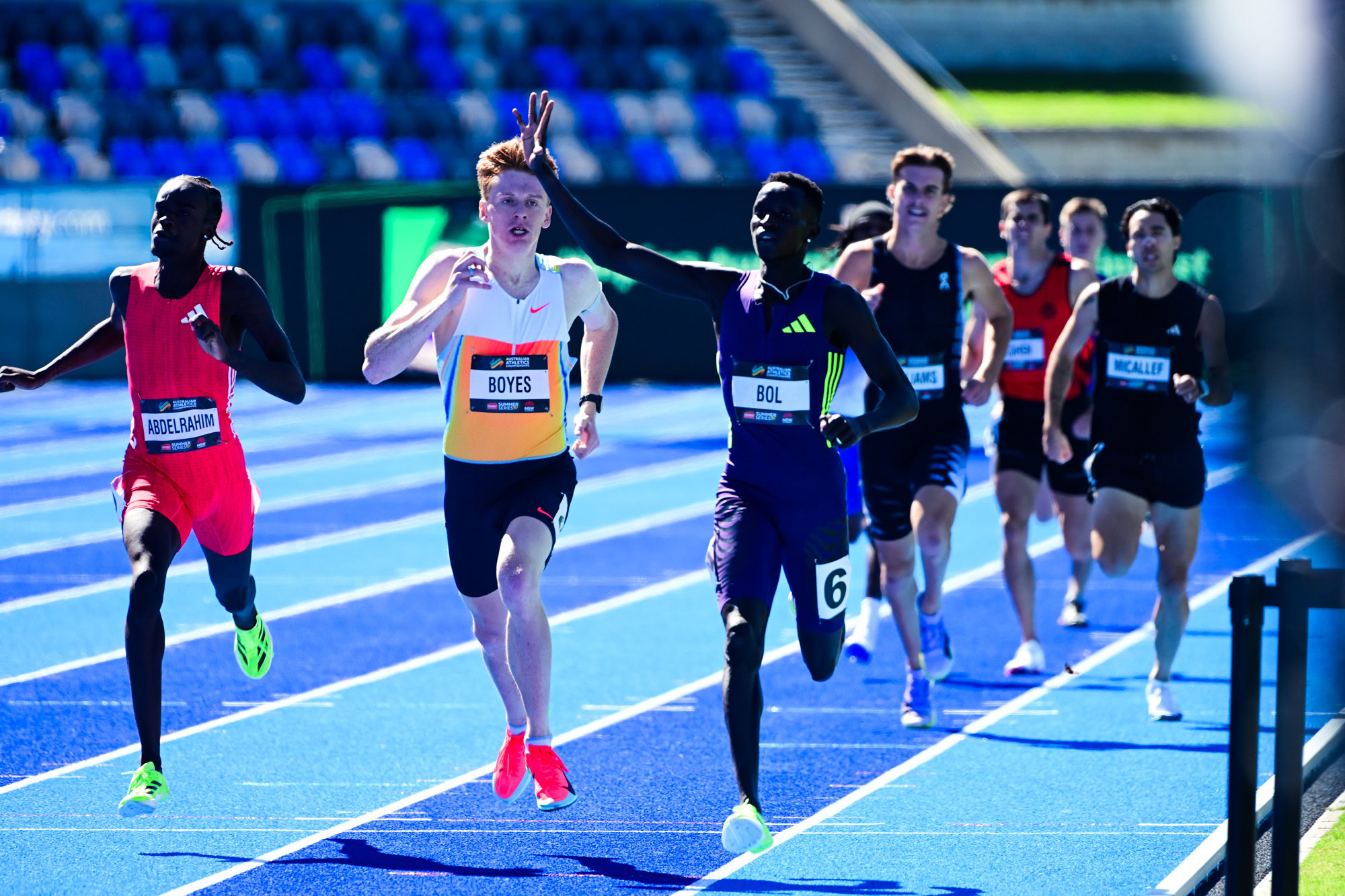 Peter Bol showed his class in the 800m, taking out his fifth national title with a 1:45.60 run ahead of Luke Boyes (1:45.73) and breakout runner of the season, Bob Abdelrahim (1:45.96).