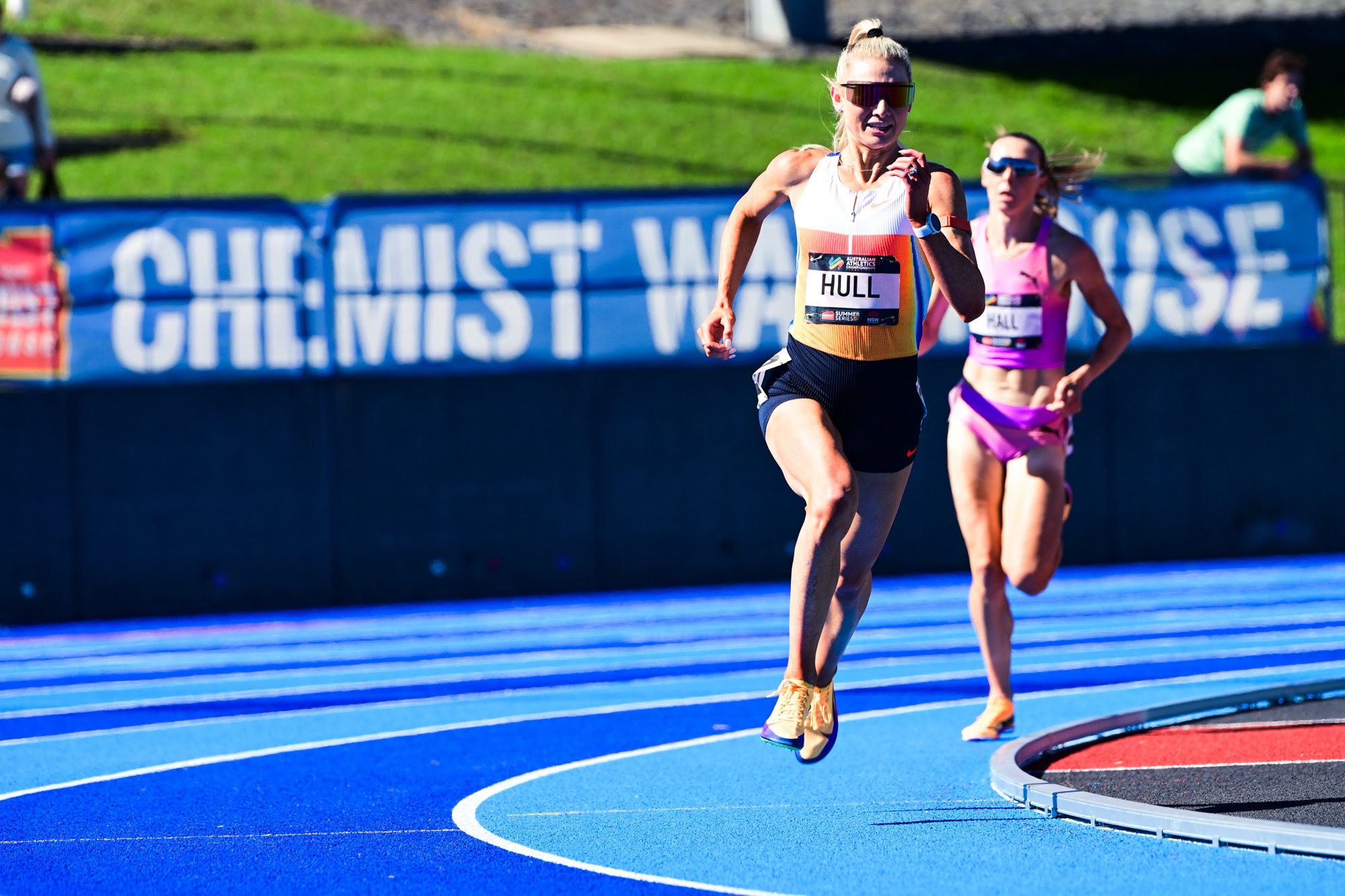 It’s hard to remember a more popular home crowd favourite than Jess Hull who recorded the most popular victory of the championships, taking out the 5000m with a stylish run after being tripped during Friday’s 1500m final. Hull ran away from Linden Hall with a 61 second final lap to clock 15:13.21. Hall ran credibly for second in 15:15.33 while Maudie Skyring finished strongly for bronze (15:18.27), overtaking Rose Davies (15:20.81) who had made a bold run from home with a kilometre remaining.