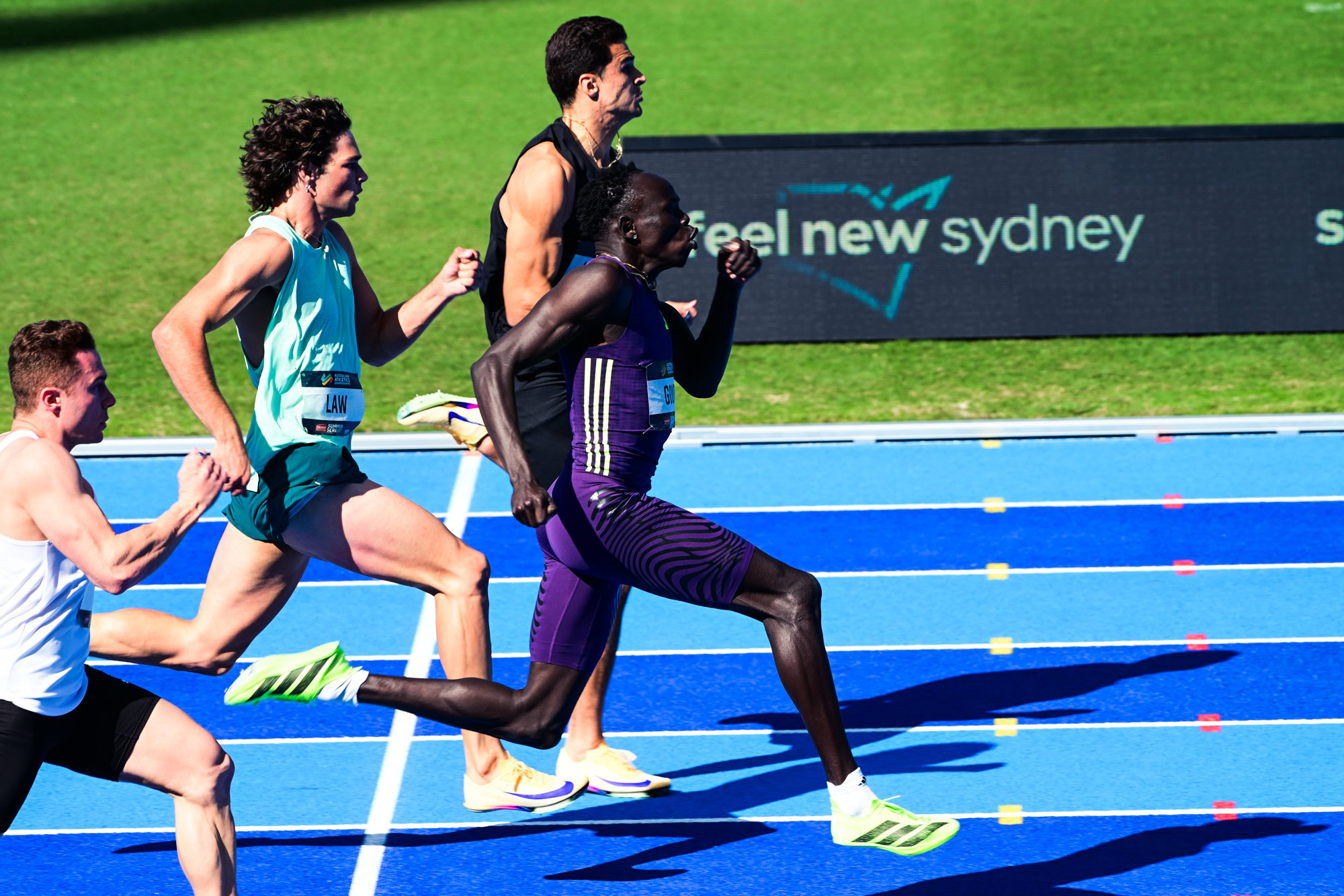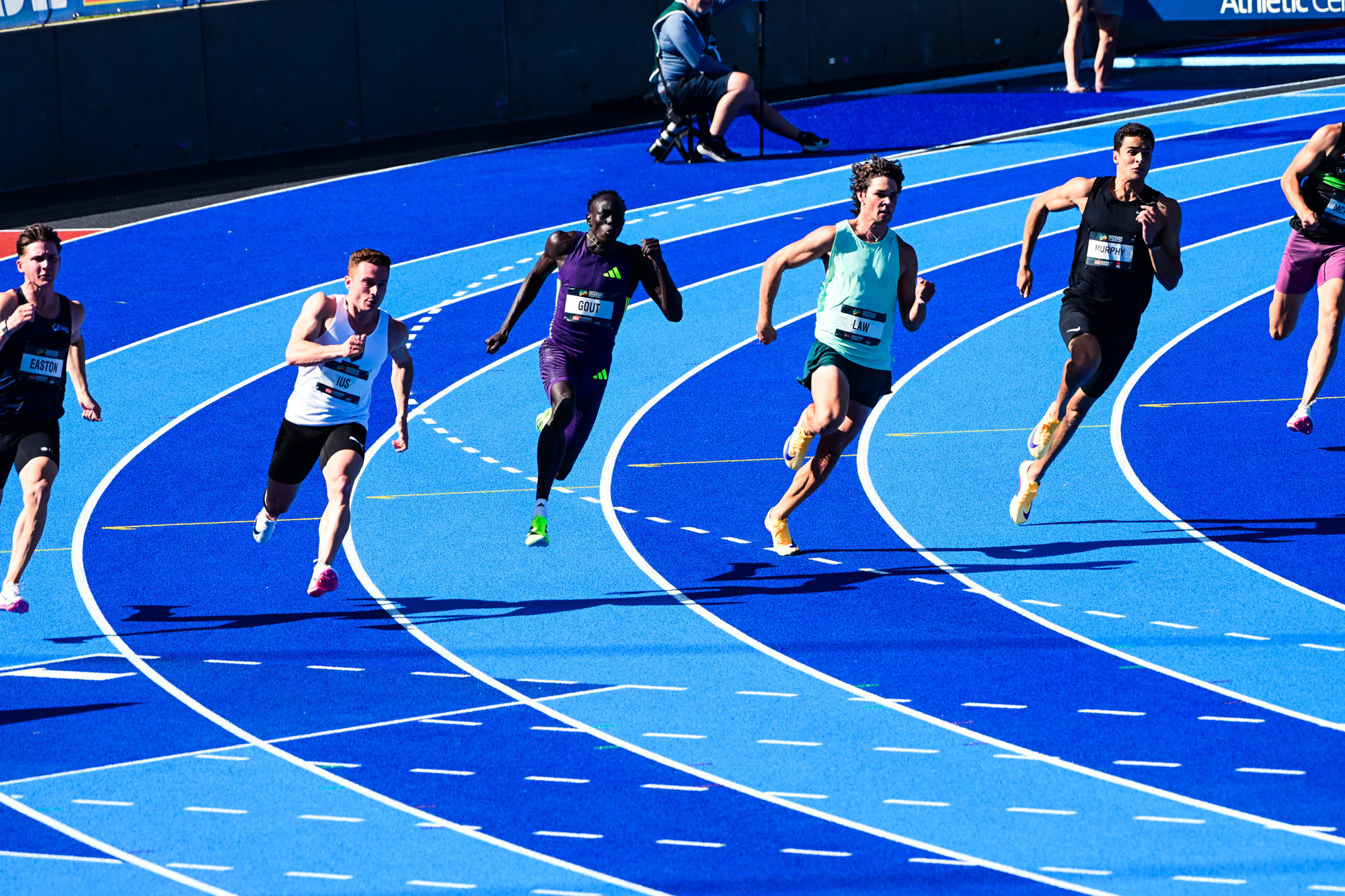 Running from lane seven, with the fast starting Christopher Ius on his outside, Gout was challenged on the outside by Aidan Murphy and Calab Law on his inside.