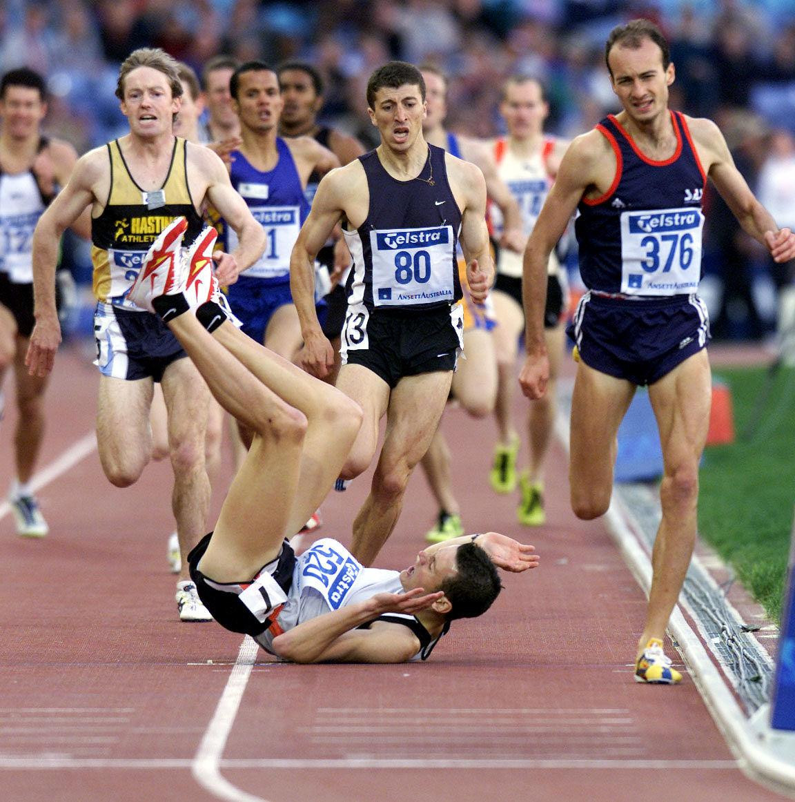 At Sydney’s Olympic trials, a young Craig Mottram was charging for the line when South Australia’s Nick Howarth made an aggressive, high-risk move up the inside. Contact was inevitable. Mottram hit the track.