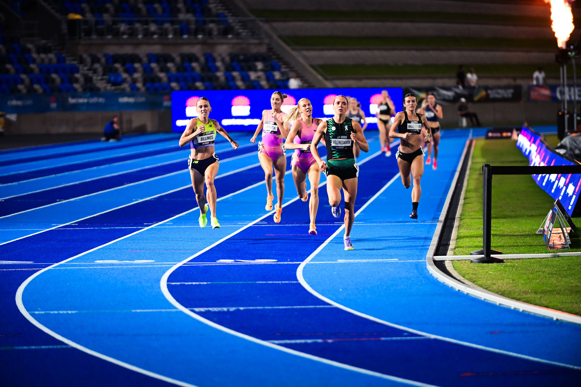 Behind them, Abbey Caldwell was checked and lost momentum just as she was building into her kick. Sarah Billings swept down the outside to catch Caldwell.
